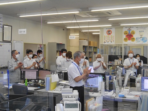 能登半島地震の災害応援として弊社は石川県七尾市七尾地区の農地災害等を担当しました。事前調査のため、先遣隊として2名の技術者を現地に派遣するにあたり、出発に先立ち壮行式を行いました。 社長から東日本大震災や令和元年台風時における支援に対する恩返しの気持ち等、激励の言葉が送られ全社員で見送りを行いました。