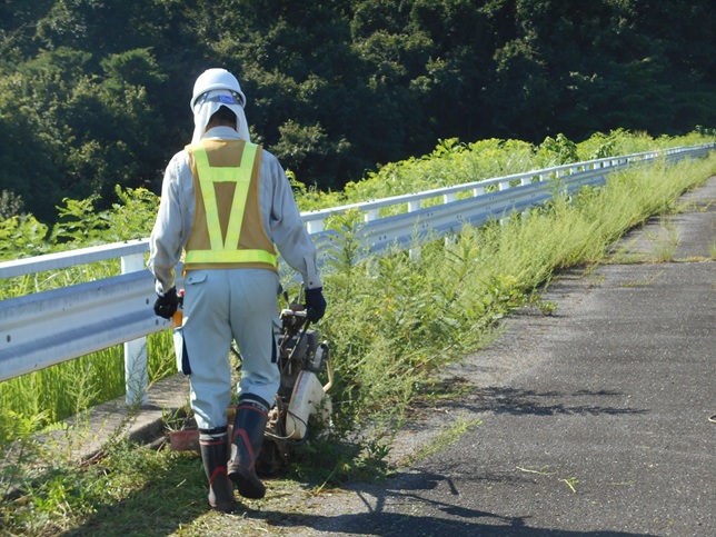 毎年、二本松事務所のある二本松市内の国道において、ゴミ拾いや歩道にはみ出たブロックまわりの除草をする道路清掃奉仕活動を行っています。