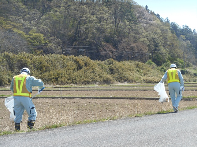 毎年、白河営業所のある白河市内の市道において、法面や側溝に落ちている空き缶やペットボトルなどのゴミを拾い集める道路清掃奉仕活動を行っています。