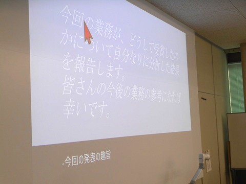 | 「積算のステップアップについて(ゼロから始める積算業務)」 | 営業課 | 橋本主事 | 特別賞 |
